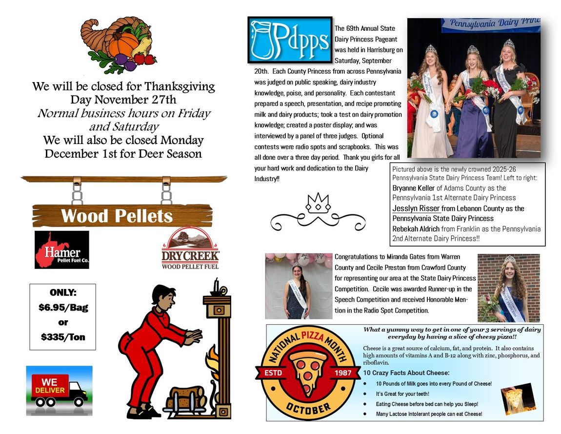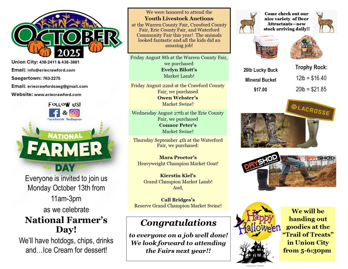 Union City and Saegertown, Pennsylvania. We offer animal feed, pet products, garden and farm supplies. With the installation of our new state-of-the-art corn dryer at our Union City location we are able